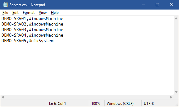 The CSV file search agent can read a text file or CSV file for items to scan in the following formats.