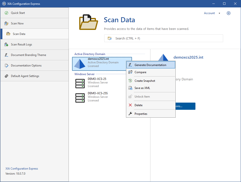 To generate documentation for a scanned item right click the item and select Generate Documentation.