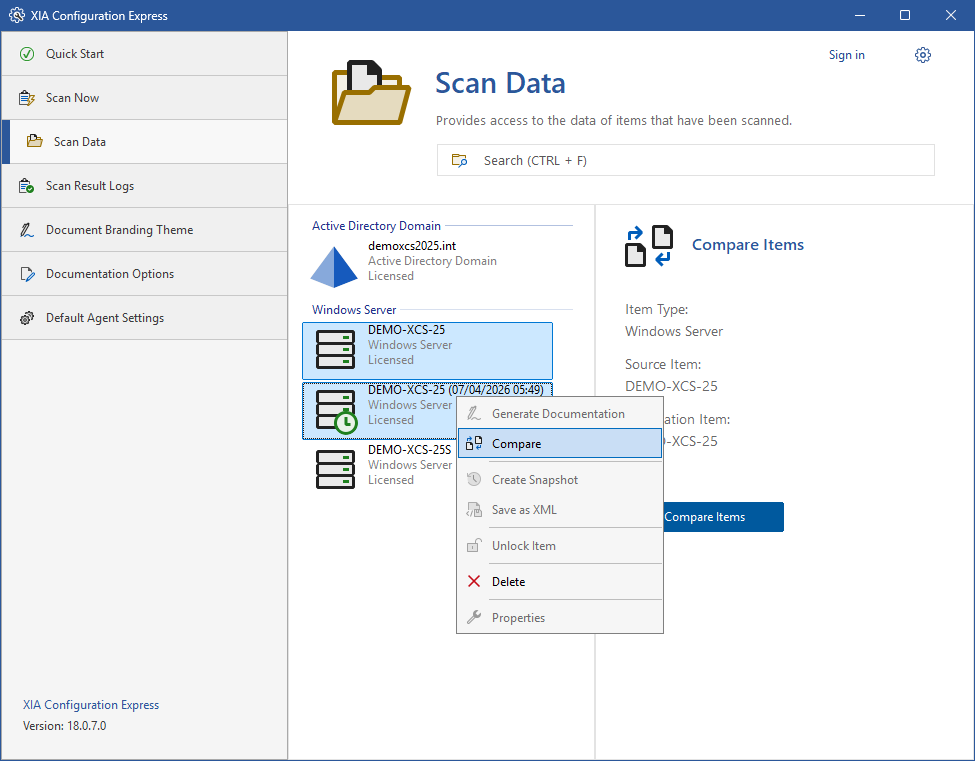 - Scanning the item will update the original item but not the snapshot so it's possible to compare the original item with the snapshot to detect changes to the item.