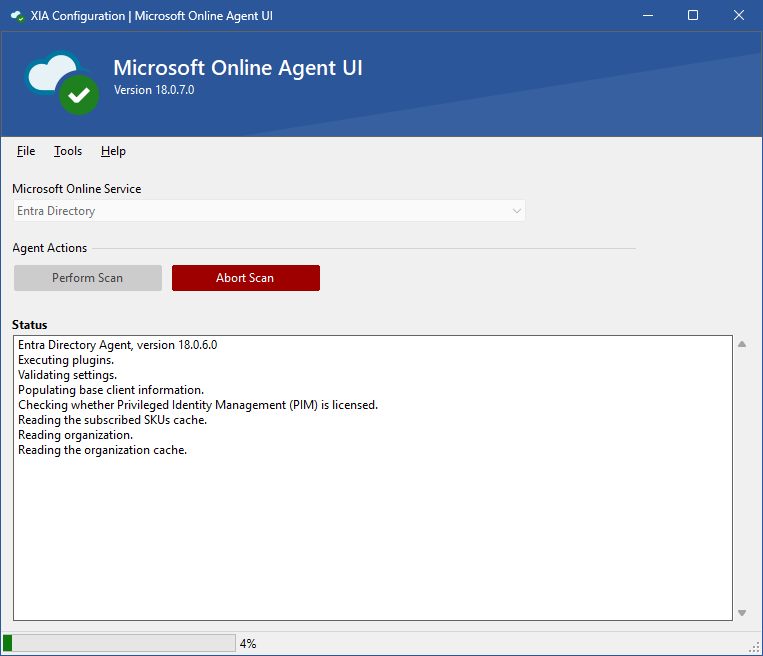 - Start the Microsoft Online Agent UI from the tools menu of the XIA Configuration Client administration tools.