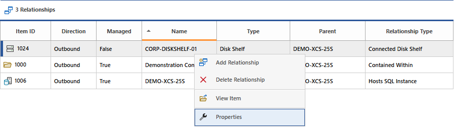 Right clicking a relationship displays the context menu.