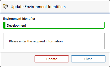 - This displays the update environment identifiers dialog.