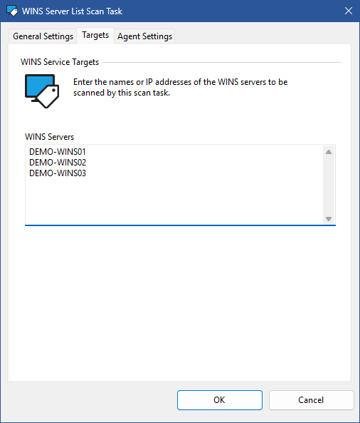 The NetBIOS names, IP addresses, or fully qualified domain names of the WINS servers to scan, one per line.