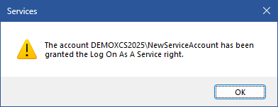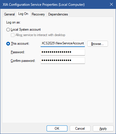 WARNING: It is recommended that you uninstall and reinstall the XIA Configuration Client instead of manually changing the service account.