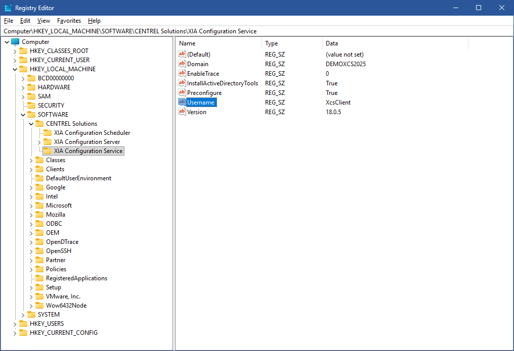 HKEY_LOCAL_MACHINE\SOFTWARE\CENTREL Solutions\XIA Configuration Service