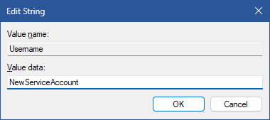 - Modify the Domain value and enter the domain name of the new service account - this must be in NetBIOS format.