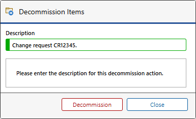 To decommission an item, select the item or items within the user interface, right click, and select decommission within the decommissioning context menu.