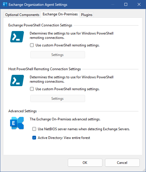 The PowerShell connection settings to use to connect to each Exchange Server to obtain host information such as manufacturer and serial number.