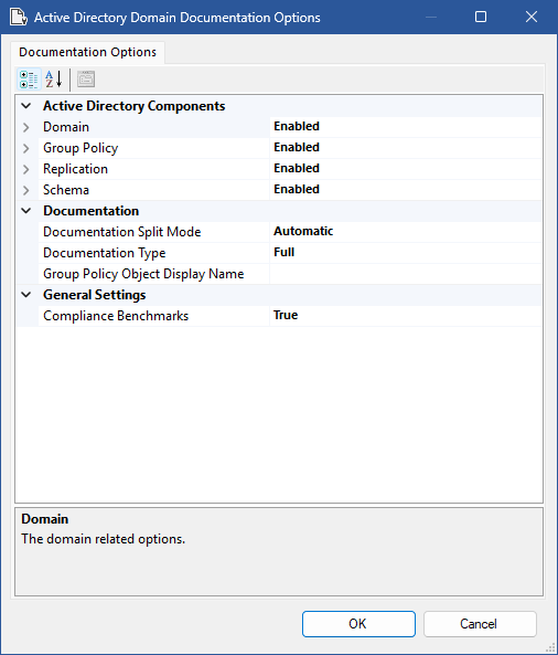 The advanced documentation options display advanced options for generating documentation of the specific scanned item.