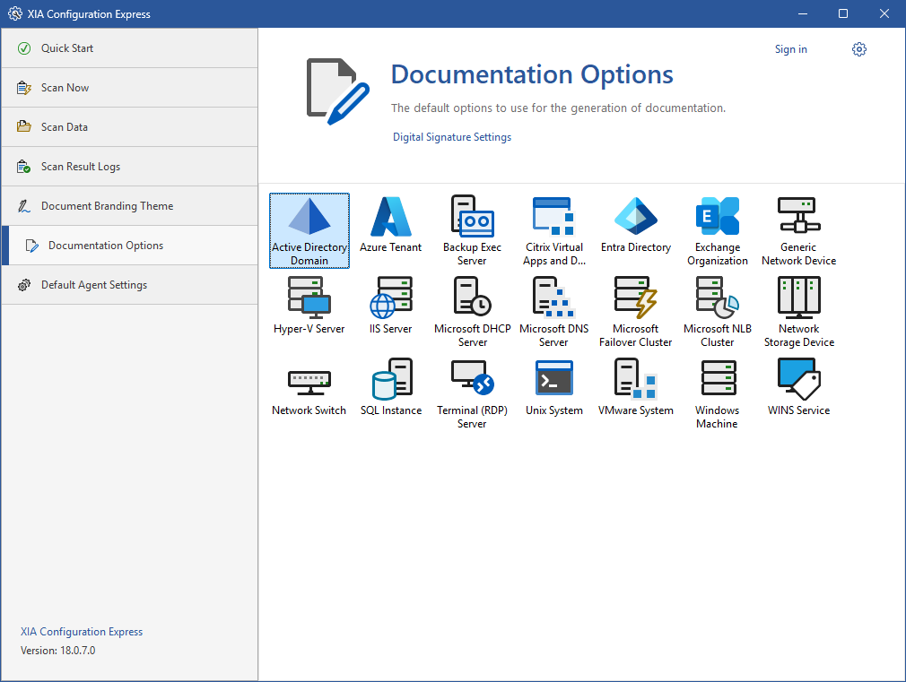 Double clicking an item in the listview displays the advanced documentation options for that item type.