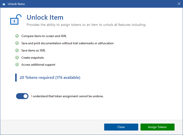 This will display the unlock item dialog - if you are not signed in to your XIA Configuration Express account you will be prompted to do so, alternatively you can unlock the items offline.