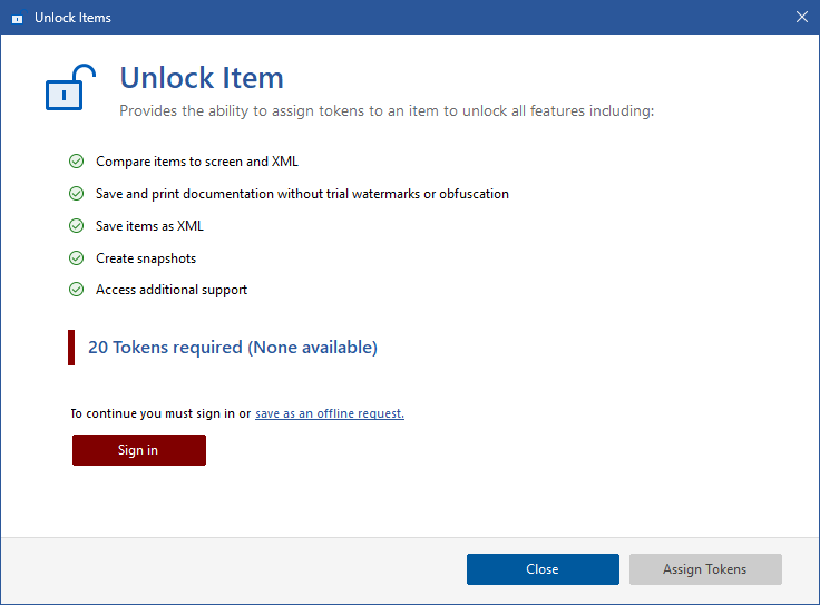 If you do not have the ability to sign in to your XIA Configuration Express account it is possible to unlock the trial and access all features of an item offline.