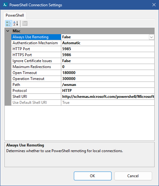 Determines whether PowerShell remoting should be used, even when a connection is being made to the local machine.