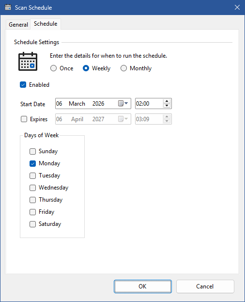 The scan profile will be executed at the specified time on each of the selected days of the week.