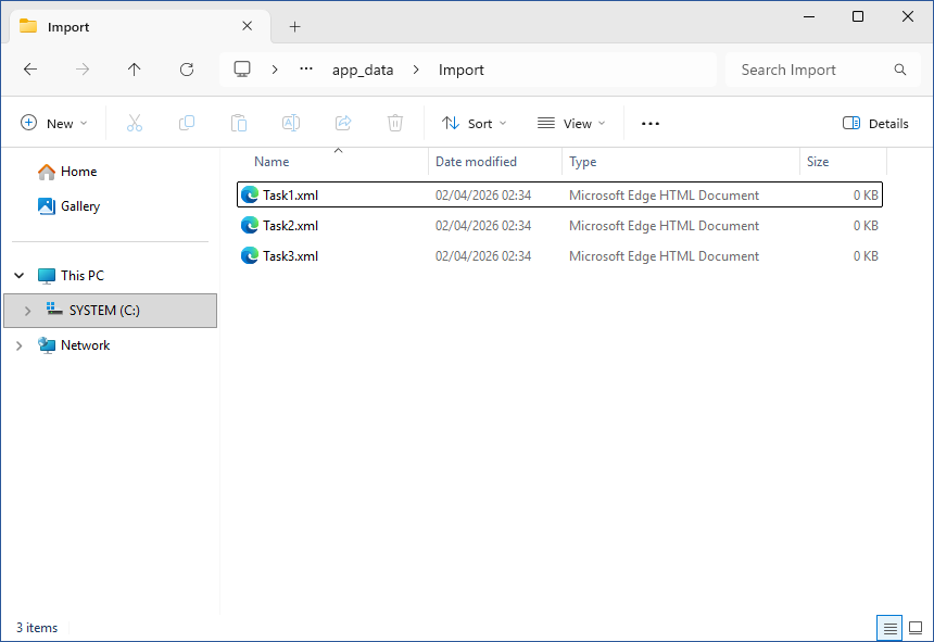The scheduler can be configured to automatically import data from XML or ZIP files found in the import directory. These files are generated by the XIA Configuration Client when configured on the file output tab of the scan profile settings.