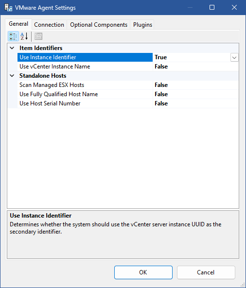 Determines whether the system should use the vCenter instance name as the item name and primary identifier. This name format is then used for both the display name and the Primary Identifier when scanning vCenter servers.