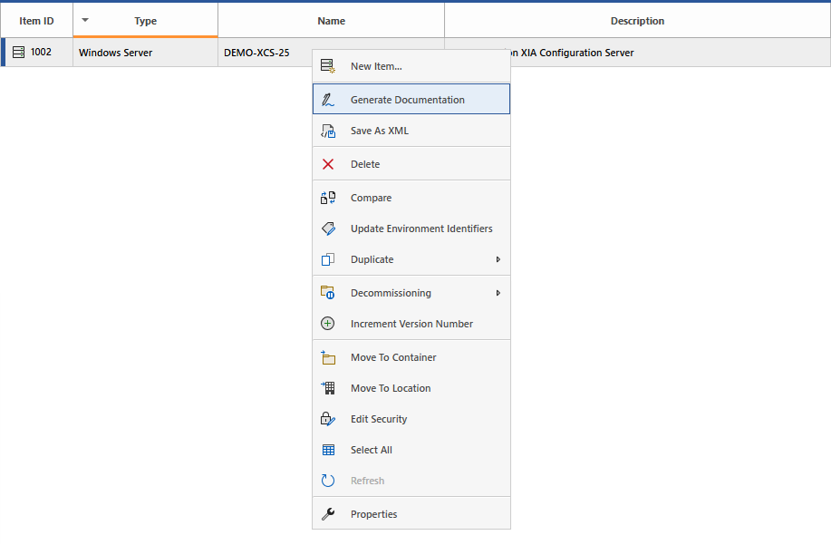 XIA Configuration Server can generate documentation for all item types in both Microsoft Word (DOCX) format and Adobe PDF format.