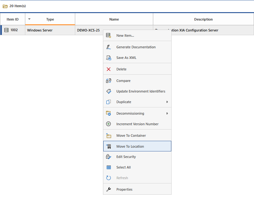 Other items can be assigned to a location, room, or rack by selecting right clicking the item, and selecting move to location.