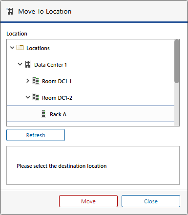 The location can be selected from the move to location dialog.