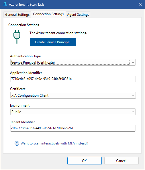 The certificate to use for authentication. The certificate must be installed in the user store of the XIA Configuration Client service account and support client authentication.