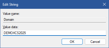 - Modify the Domain value and enter the domain name of the new service account - this must be in NetBIOS format.