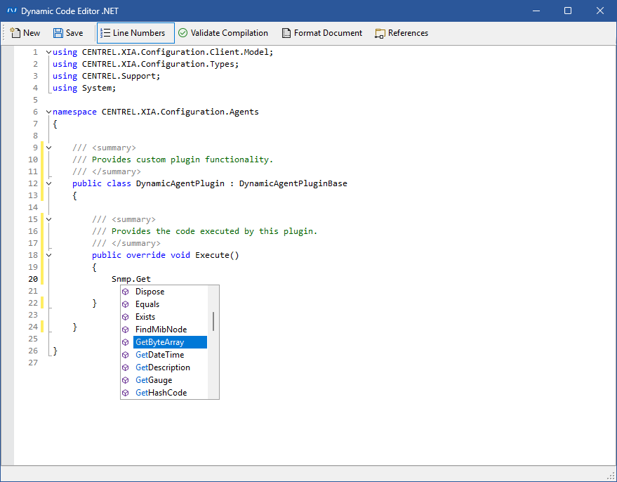 Agent plugins are able to communicate with remote devices using the Simple Network Management Protocol (SNMP) with the built-in SnmpSupport class, accessible through the Snmp property.
