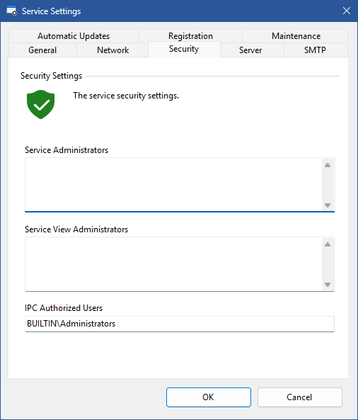 By default the service account is made a local administrator, however if the account does not have these permissions it must be manually given service administrator or service view administrator rights in the security settings.
