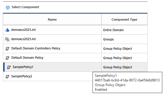 This allows, for example, two individual Group Policy objects within a Active Directory domain to be directly compared.