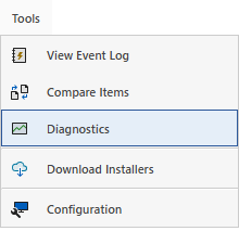 To access the diagnostics page, select the Tools > Diagnostics menu item.