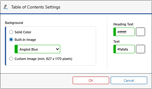 The background color or image to use for the table of contents pages.