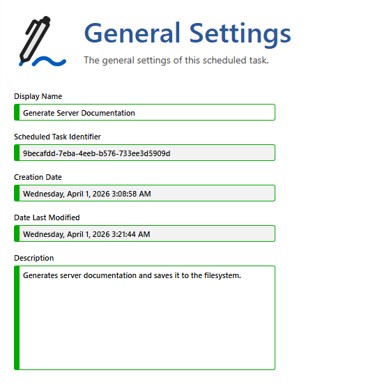 A description of the documentation generation scheduled task.