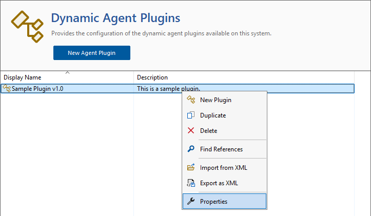 Right clicking a dynamic agent plugin displays the context menu.