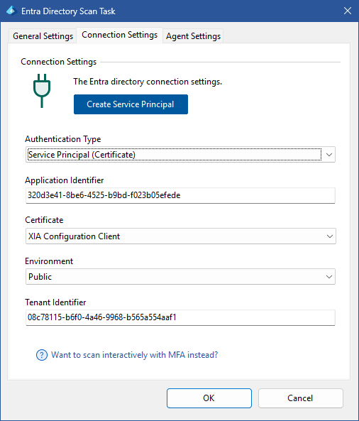 The certificate to use for authentication. The certificate must be installed in the user store of the XIA Configuration Client service account and support client authentication.