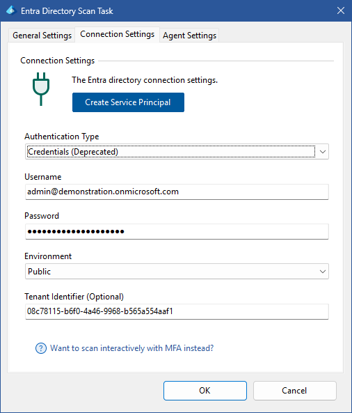 It is recommended to use a service principal with a certificate, or login interactively using multi-factor authentication using the Microsoft 365 agent UI.