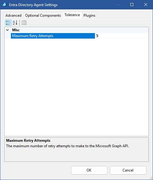 XIA Configuration ClientScan TasksEntra DirectoryAgent Settings Tolerance Maximum Retry Attempts The maximum number of retry attempts to make to the Microsoft Graph API.