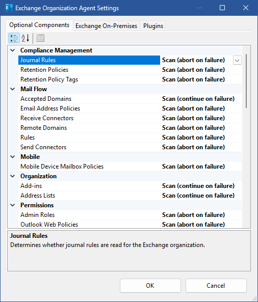 Determines whether the status information of Exchange servers is read for the Exchange organization. Each server must be online and accessible at the time of the scan for this component to complete successfully. This only applies to Exchange On-Premises.