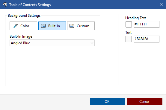 The background color or image to use for the table of contents pages.