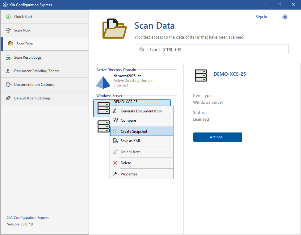 - The snapshot will be created with the same item name and the date of the client scan captured in the snapshot.