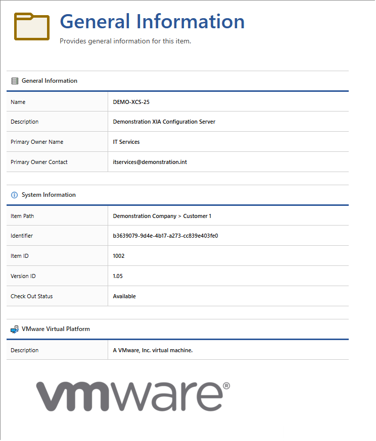 The contact details of the owner of the item. Depending on the item type, this field may have been populated automatically by the XIA Configuration Client, but can also be manually updated.