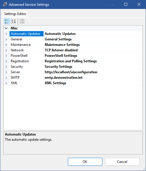 - Click Tools > Advanced > Advanced Service Settings to open the service advanced settings editor.