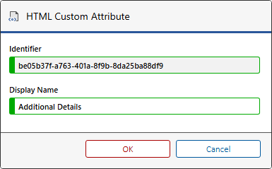 The HTML custom attribute type allows the user to enter HTML using the HTML editor.