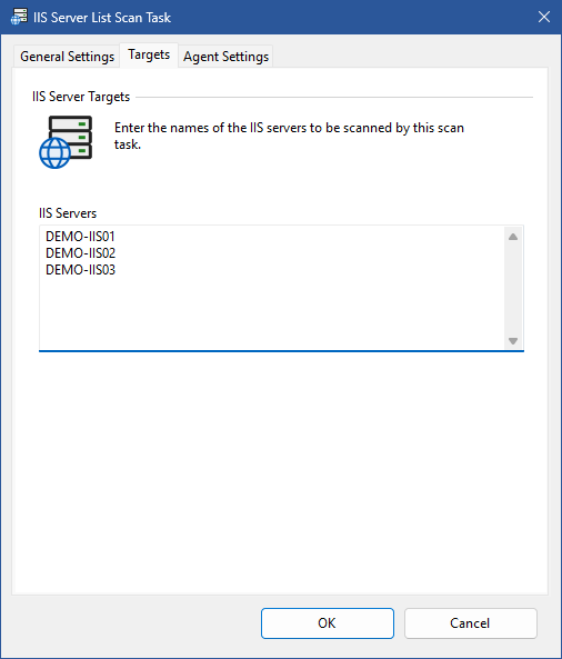 The IP addresses, NetBIOS names, or fully qualified domain names of the IIS servers to scan, one per line.