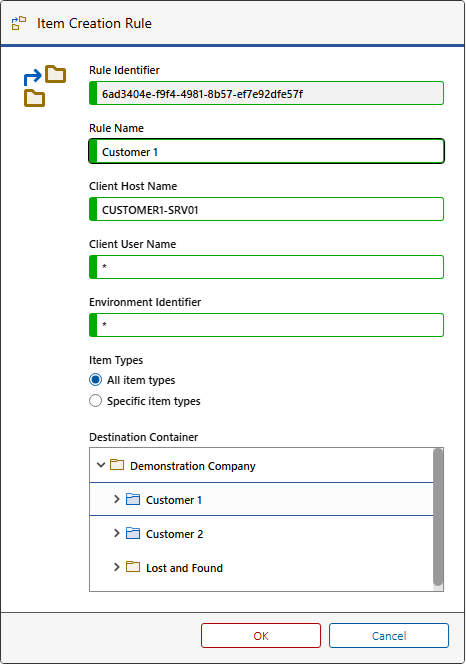 Item Creation Rule Dialog