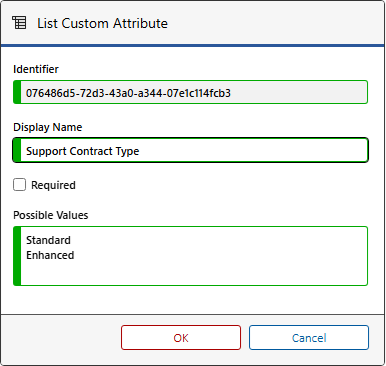 The list custom attribute type allows the user to select a value from a drop down list.