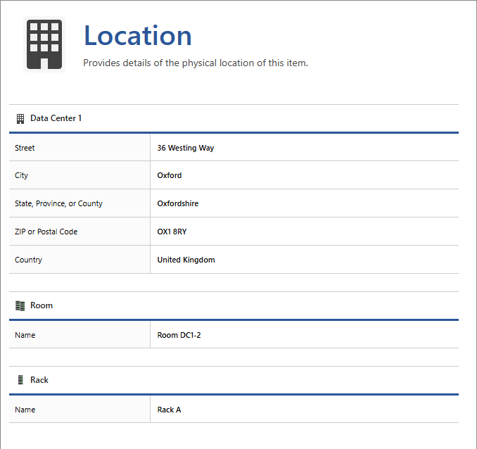 Physical items can be assigned a location which dynamically generates the information visible in the location section.