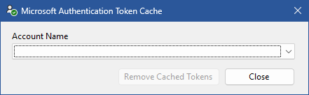 The Microsoft Authentication Token Cache user interface displays the tokens cached by the Microsoft Authentication library (MSAL) and can be used to remove cached tokens for the specified user allowing re-authentication to occur.