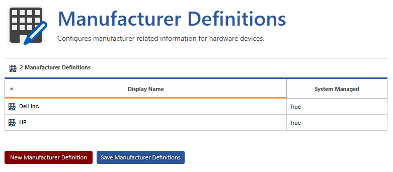 Manufacturer definitions allow information such as a warranty lookup hyperlinks to be automatically detected for hardware items.