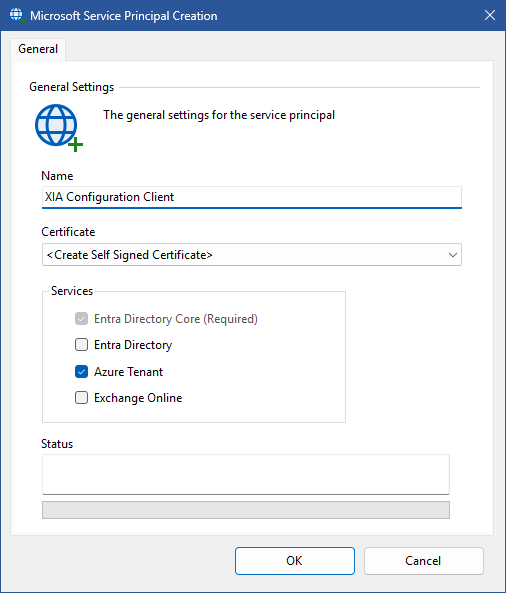 The Microsoft service principal creation tool automatically creates a service principal in the Entra directory and optionally creates and assigns a self-signed certificate to use for authentication.