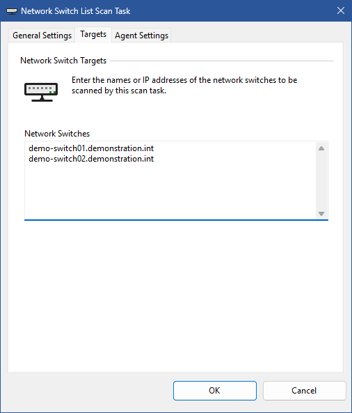 The IP addresses or fully qualified domain names of the network switches to scan, one per line.