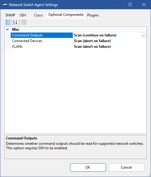Determines whether command outputs should be read for supported network switches. This option requires SSH to be enabled and configured.